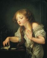 Le sujet de ce petit poème est si fin, que beaucoup de personnes ne l’ont pas entendu ; ils ont cru que cette jeune fille ne pleurait que son serin. Greuze a déjà peint une fois le même sujet ; il a placé devant une glace fêlée une grande fille en satin blanc, pénétrée d’une profonde mélancolie. Ne pensez-vous pas qu’il y aurait autant de bêtise à attribuer les pleurs de la jeune fille de ce Salon à la perte d’un oiseau, que la mélancolie de la jeune fille du Salon précédent à son miroir cassé ? Cet enfant pleure autre chose, vous dis-je... »